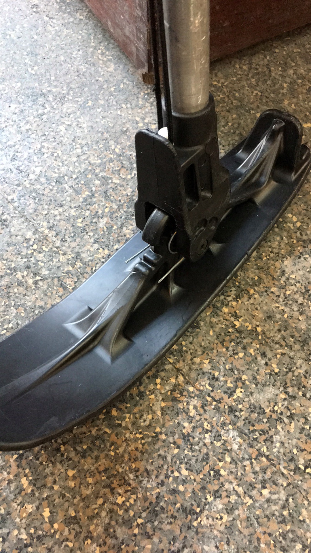 Well, I had to find a way to fix this key show-stopper of an issue. I thought Whistler must have an adaptive program with participants using outriggers who could help diagnose the problem, so I called them. No one picked up the phone, so I followed Google’s directions to the 2010 Winter Paralympic Village, where they supposedly are located. The place was pretty deserted and I could not find signs of an office, program meeting location. So I drove back to Mike’s place (where I was staying) to try and see if I could fix the issue myself. I took apart the outrigger and saw why the outrigger was not flipping down/up. The metal spring had broken.