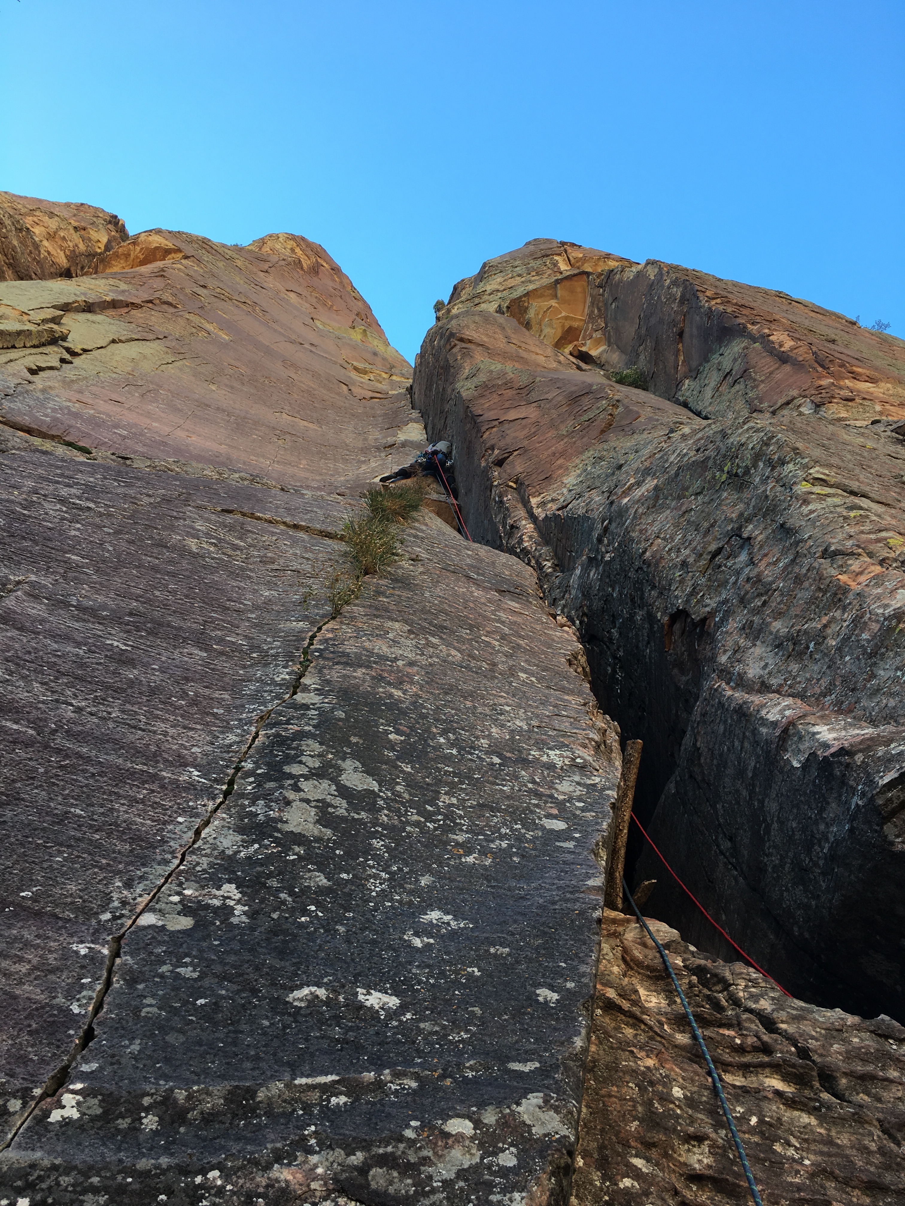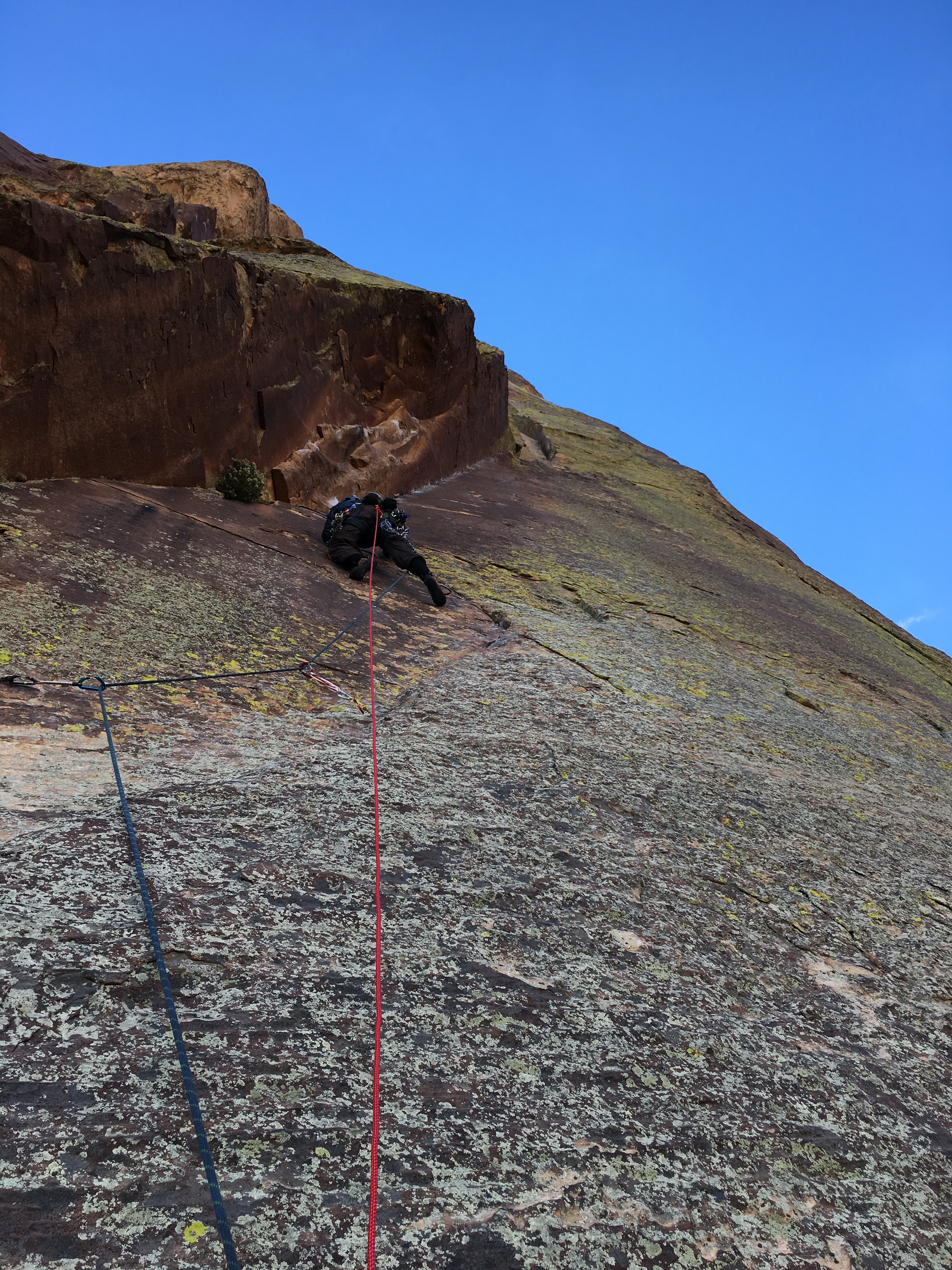 On one of my .10 runout slab pitches. I would trend upwards and right because of my good right leg, only to find that the bolts were way to the left and I would need to do something desperate to get over to that left side.
