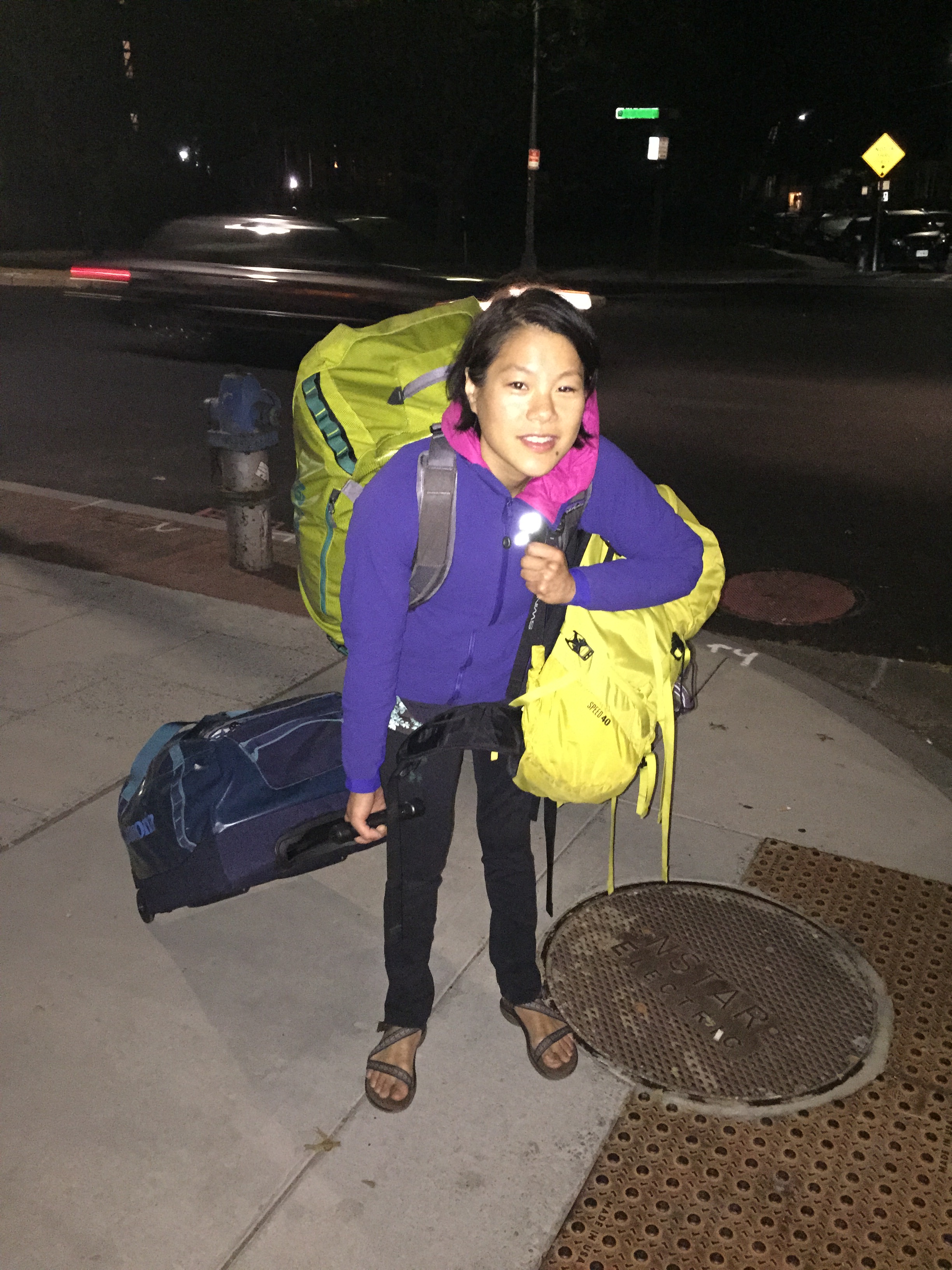 Since my plans were unclear, I ended up bringing a lot of my free and aid-climbing gear. It is hard to tell, but the rolling bag is twice the capacity of the gear bag on my back.