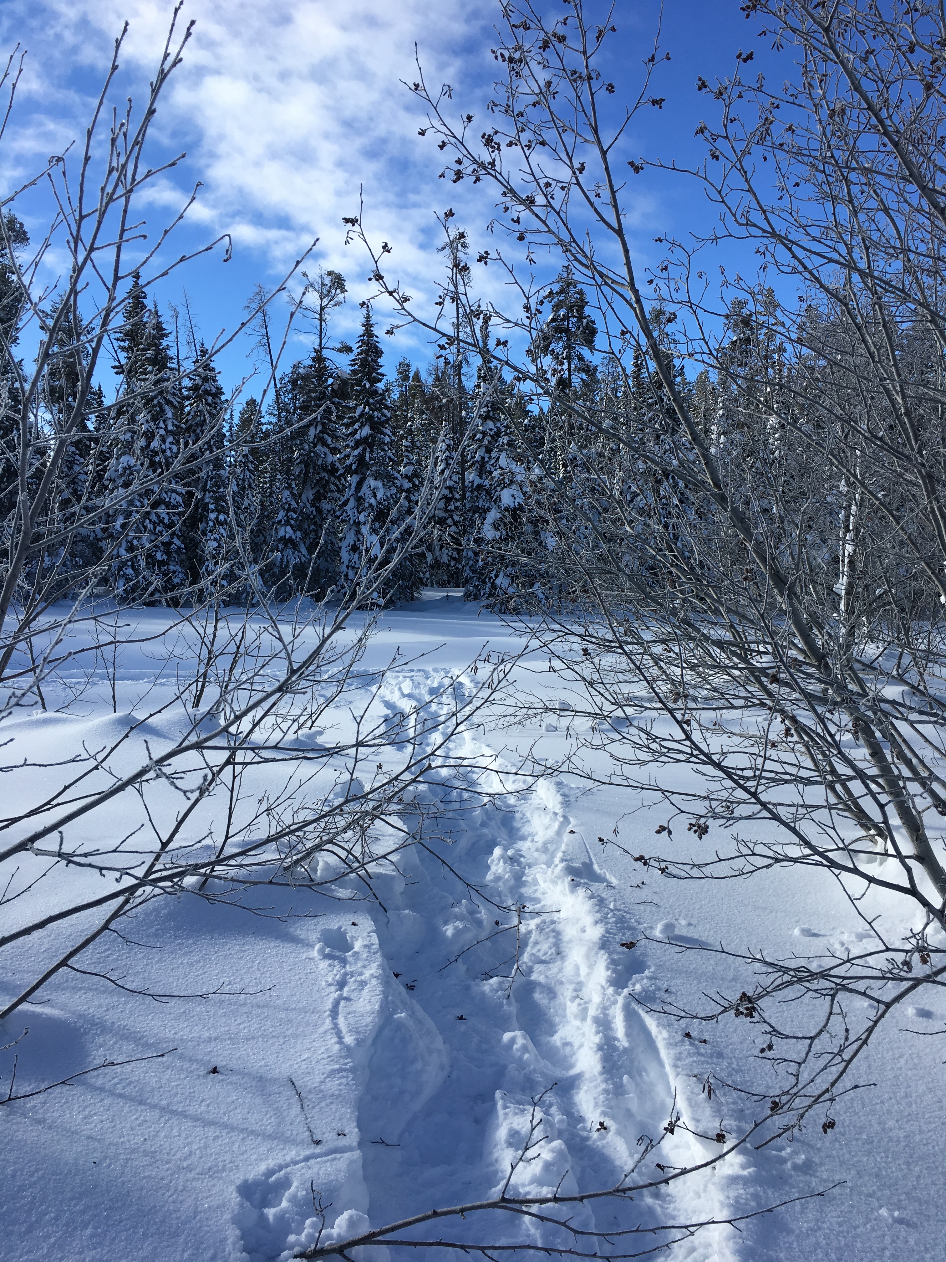 I think the leg is doing better as it was not hurting as much as it did on Thursday’s snowshoe. I am keeping my fingers crossed tomorrow’s test on ski (singular) will be a smashing success.